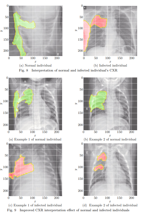 - 해석 가능성 연구를 통해 의사들이 COVID-19 감염 여부를 판단하는 데 도움을 주고, "AI 의사"가 CXR에서 감염 가능성이 있는 위치를 식별하고 의사들에게 진단 지원을 제공.