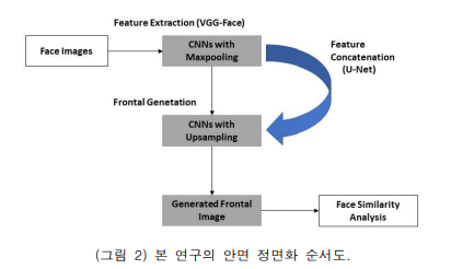 측면에서도 높은 인식률을 보여준 VGG-Face를 활용해 안면의 특징을 추출 &U-Net구조를 통해 추출과정에서 생길 수 있는 정보 손실을 방지