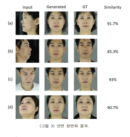 안면 정면화는 다양한 안면각도에서 신원정보가 손실되지 않은 정면을 생성하는 것이 중요