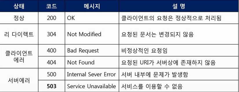 응답 상태코드는 100~599로 구성되어 있으며, 자주 사용하는 200(성공), 400(도메인 에러), 500(서버 내부 오류)를 포함한다.
