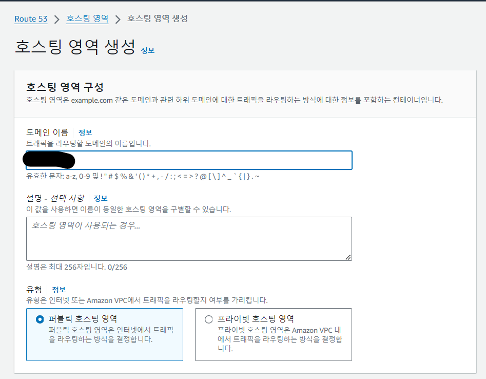 도메인 이름 작성 후 호스팅 영역 생성