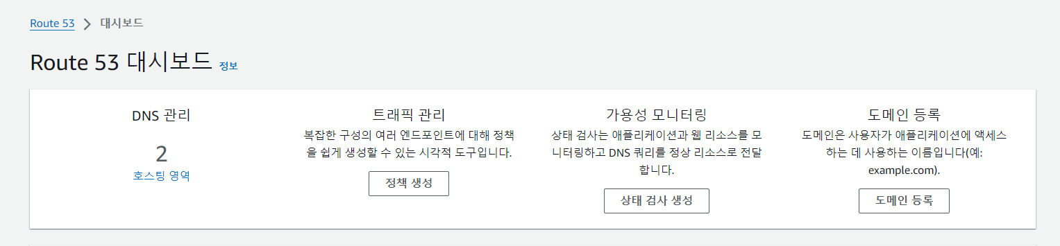 Route53 초기화면에서 호스팅 영역 생성