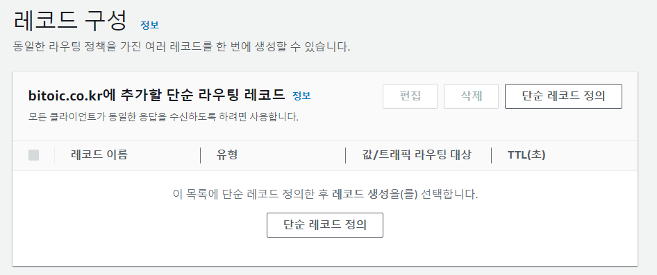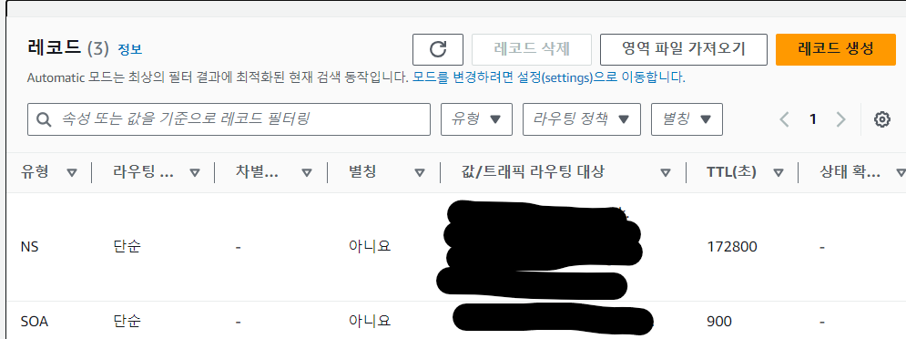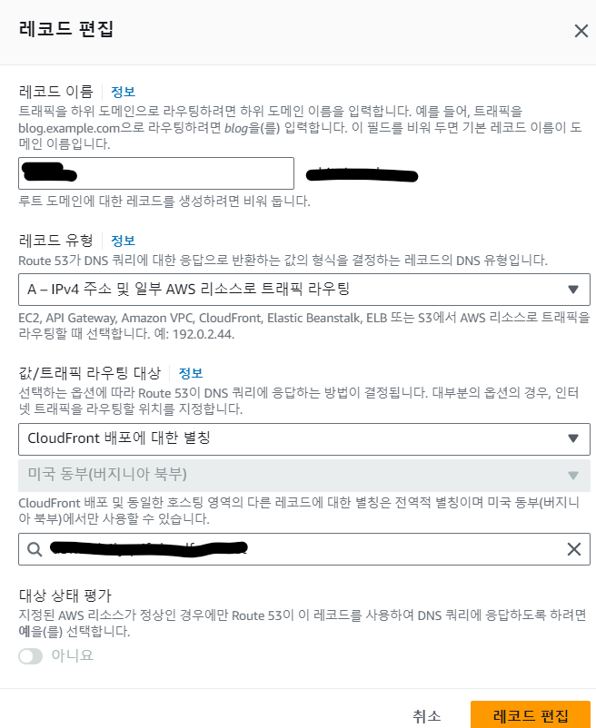 -> Route53 호스팅영역을 생성하면서 받은 값/트래픽 라우팅 대상 값 입력