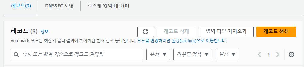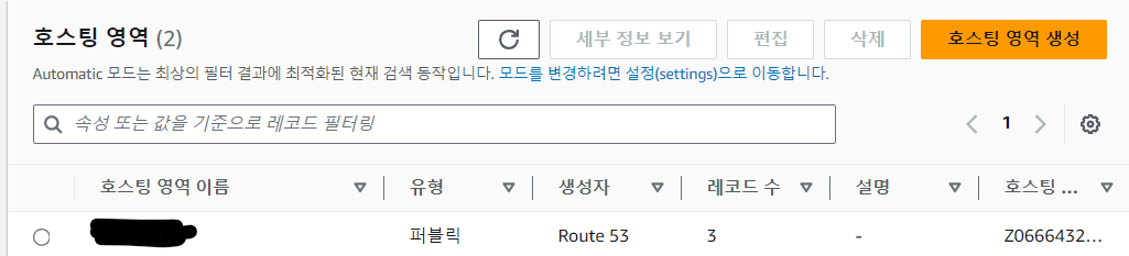 Route53으로 돌아와 생성한 호스팅 영역 선택