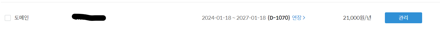 마이페이지 이동 후 결제한 도메인 확인 -> 관리