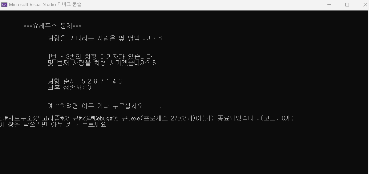 printf("\n\n\t***요세푸스 문제***\n\n");
