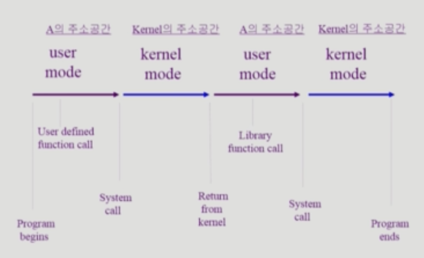 - interrupt나 Exception 발생시 하드웨어가 mode bit을 0으로 바꿈