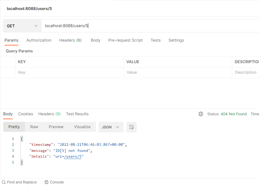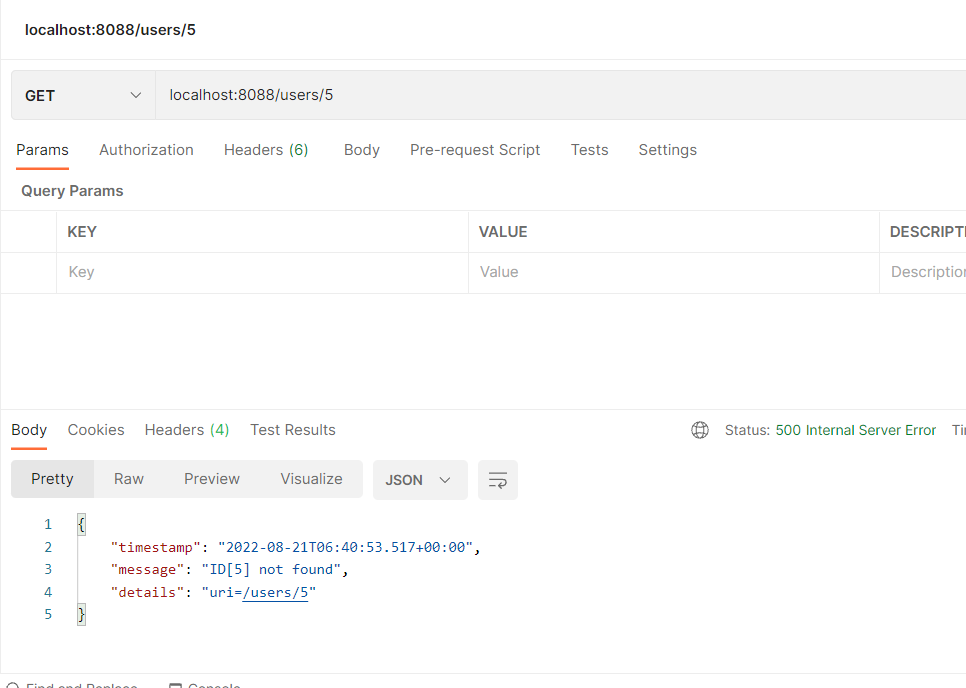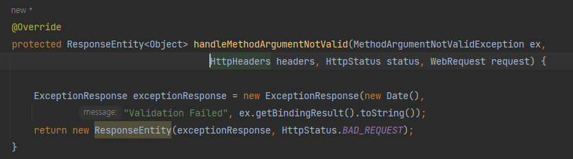 예외 발생할 경우 생성되는 메시지