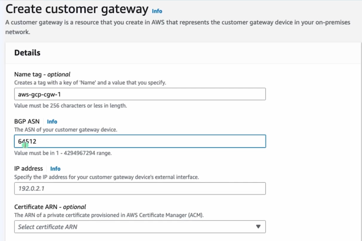 router bgp ipv4 address 커스텀게이트웨이 ip