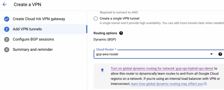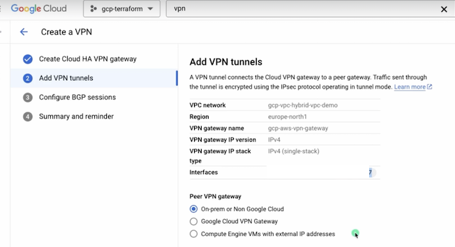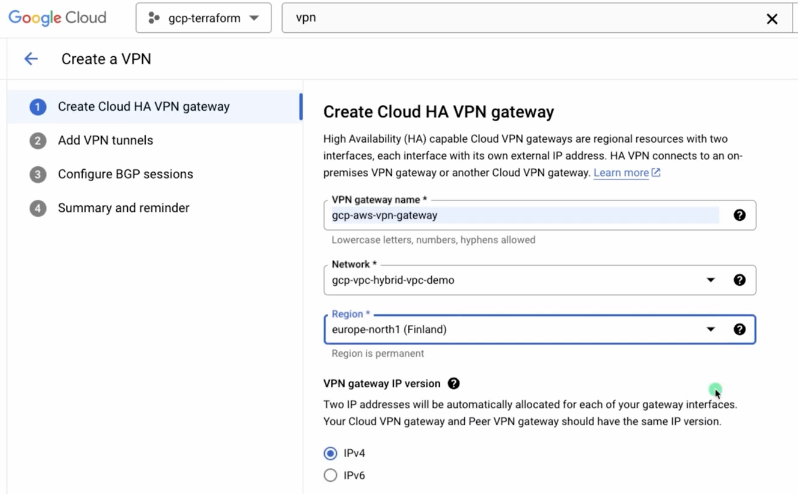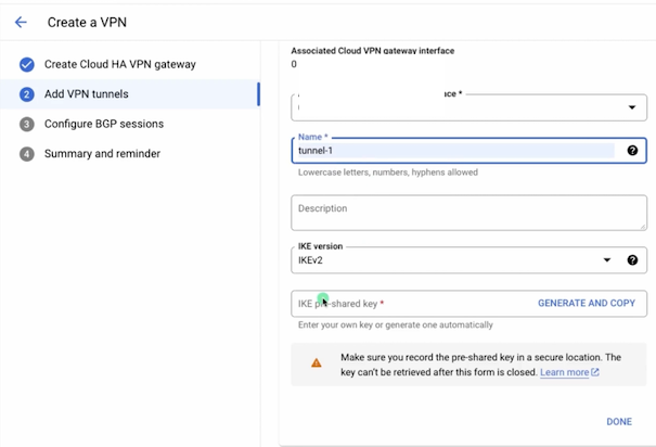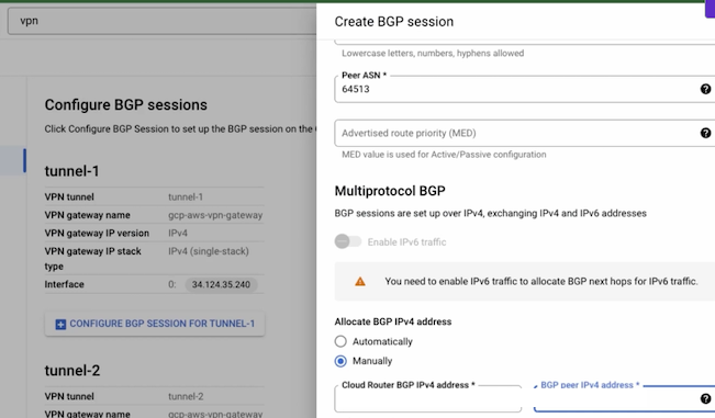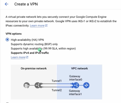 google vpn 외부 터널 주소로 2개 생성