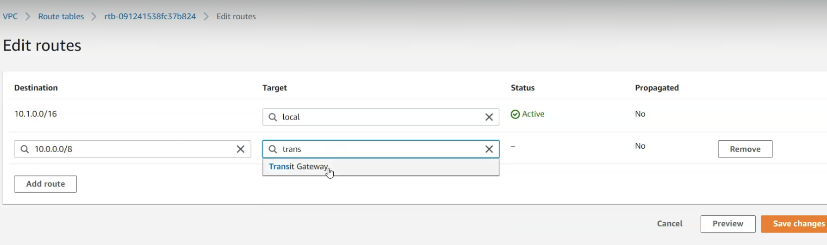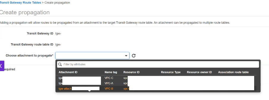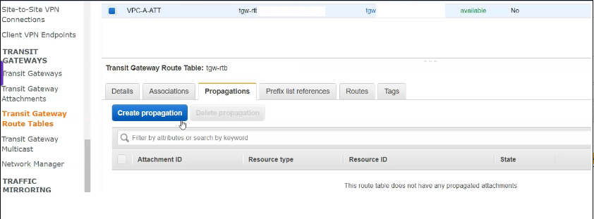 proagations (vpc-a > b 연결)