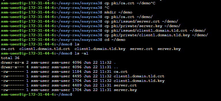 $ cp pki/private/client1.domain.tld.key ~/demo/ $ cd ~/demo
