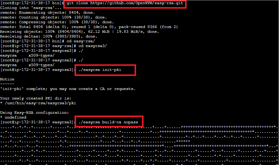 $ git clone https://github.com/OpenVPN/easy-rsa.git $ cd easy-rsa/easyrsa3