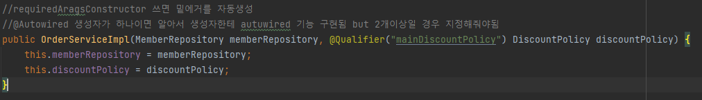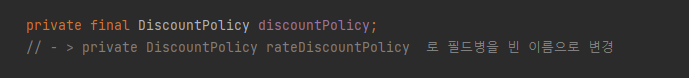 이러면 생성자 생성시 @Primary 붙인 RateDiscountPolicy가 우선 적용