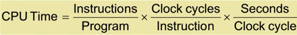 - CPU Time = Instruction Count X CPI X Clock Cycle Time