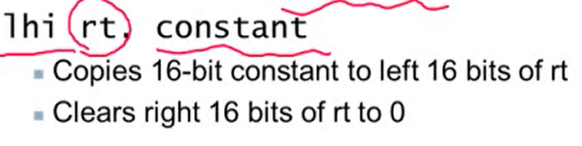 - MIPS에서 상수는 16bit. 32bit의 상수를 다루기 위해서는 두 개의 instruction이 필요