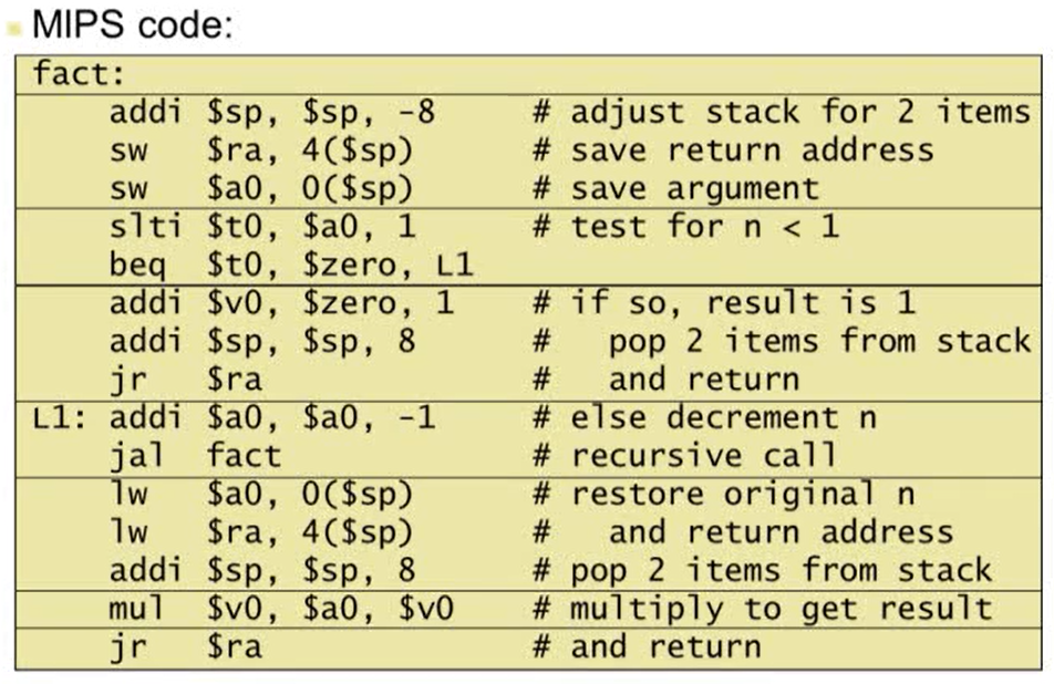- $v0 - $v1: return value를 저장하기 위해 사용되는 두 개의 register