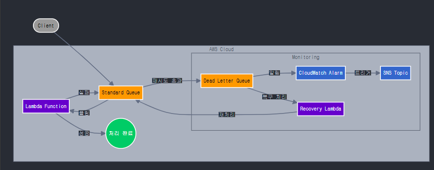 DLQ로 이동된 메시지를 모니터링하고 알림 또는 복구 로직을 구현합니다.