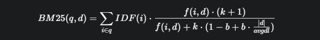 k,b: ํ์ดํผํ๋ผ๋ฏธํฐ (๋ณดํต k=1.2,b=0.75)