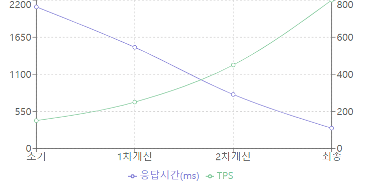 위 그래프는 성능 최적화 전후의 응답 시간 및 TPS 변화를 보여줍니다.