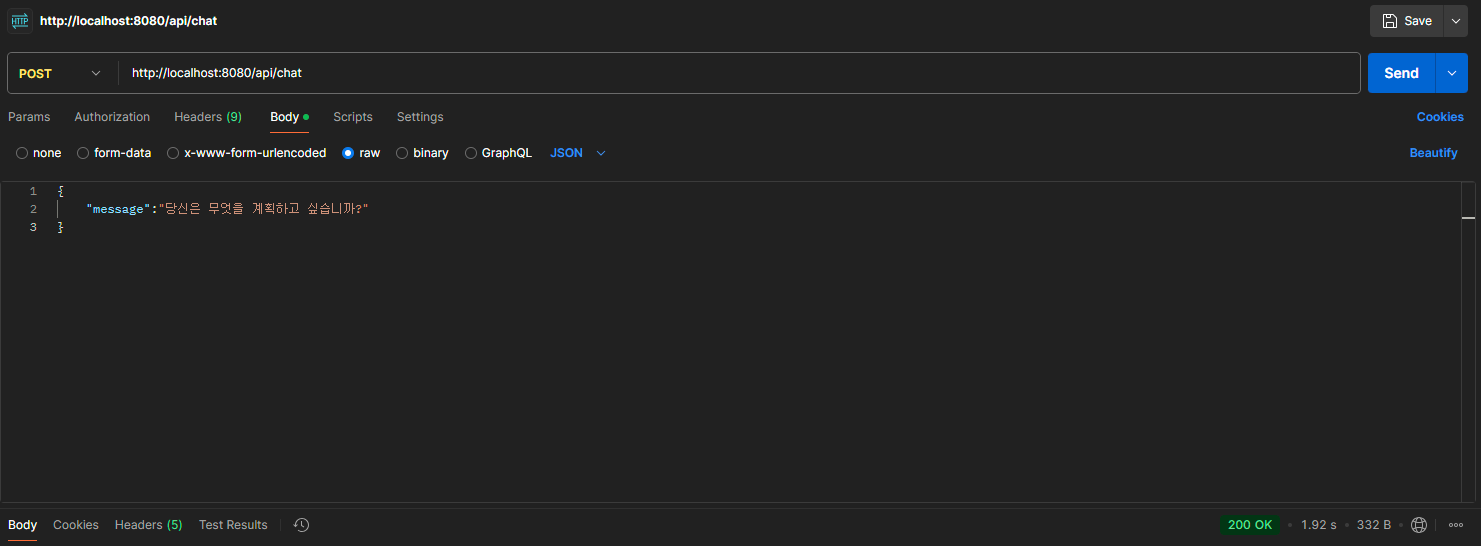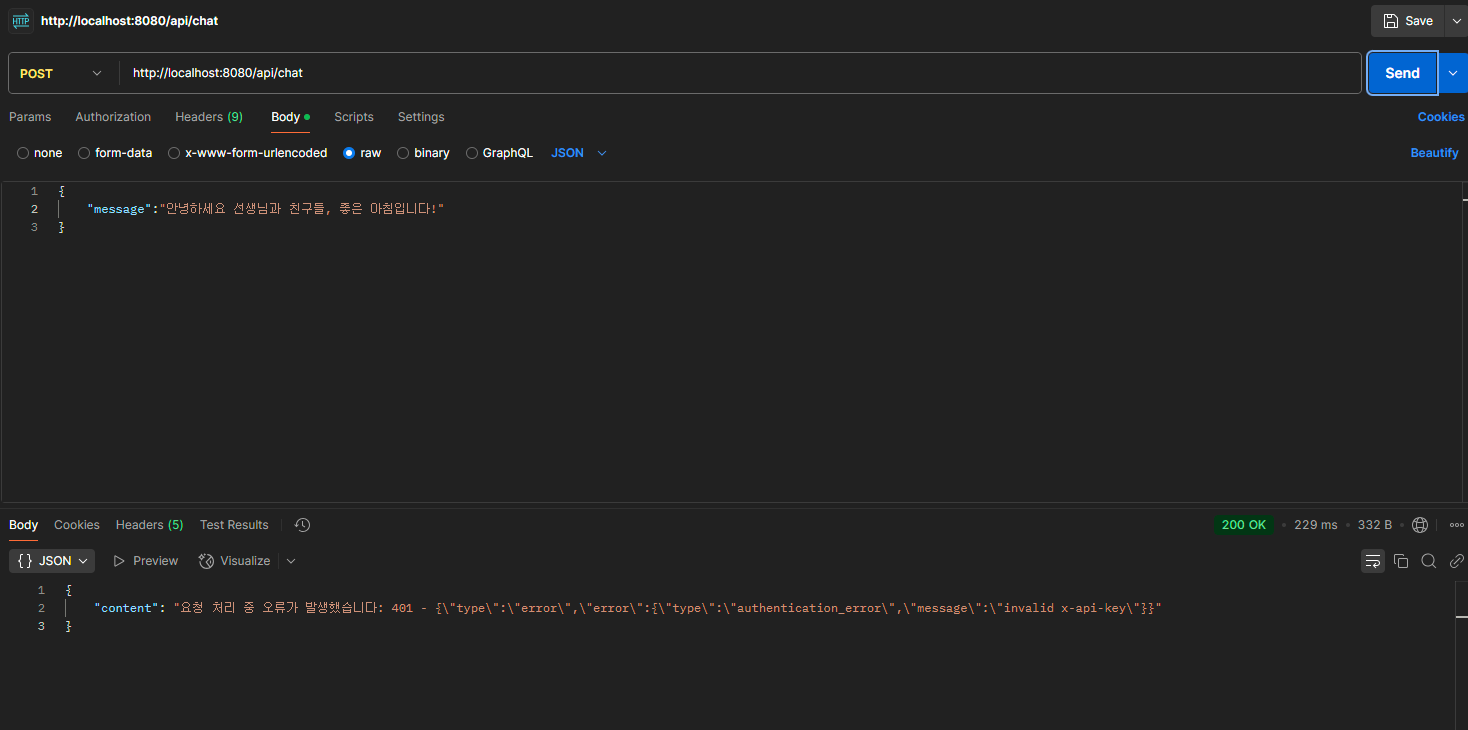 * 채팅 컨트롤러, AI 채팅 요청 처리