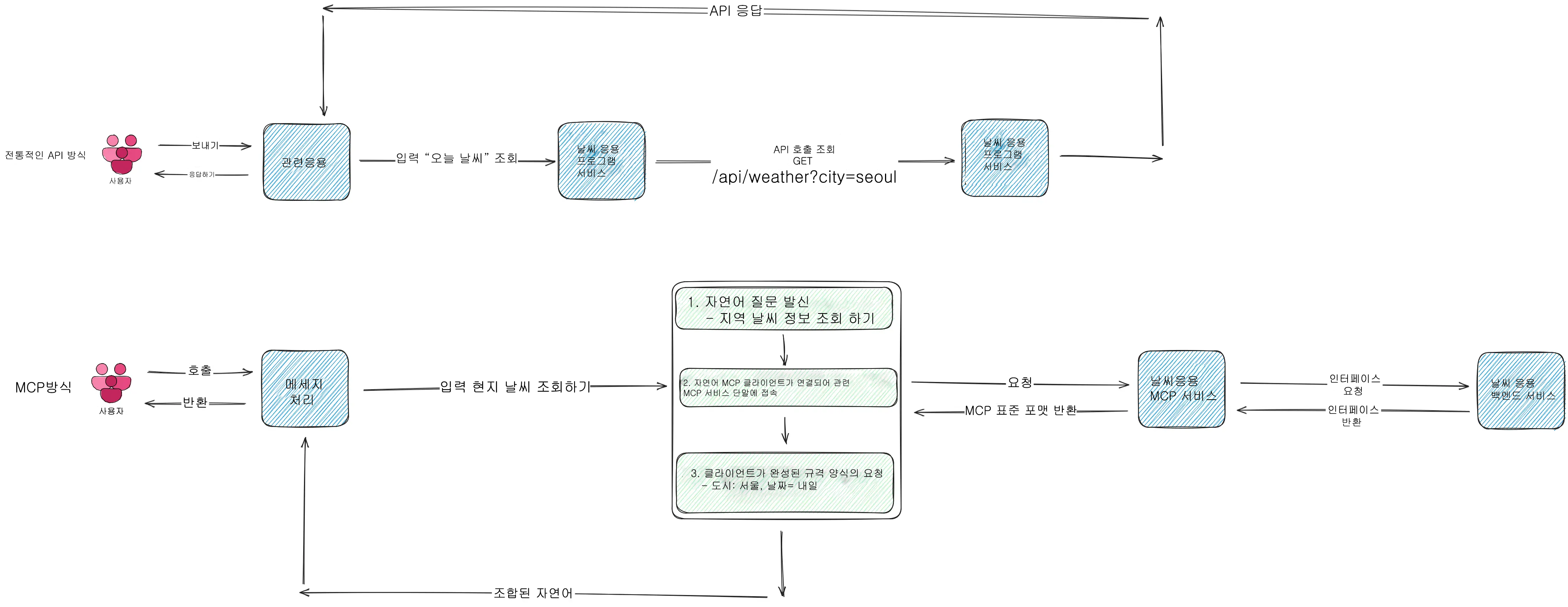 여기서는 기존 API 방법과 MCP 방법을 비교해보겠습니다 .