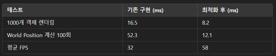 캐싱 도입: World Position 계산 결과를 캐싱하여 중복 계산을 방지.