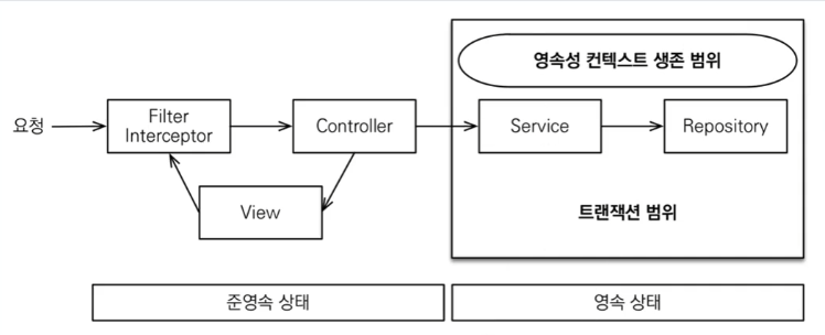 EntityManager 과 트랜잭션은 생성 시점과 종료 시점이 원래는 다르다는 것을 명심하고 지나가자. (스프링에서@Transactional 을 붙이면 알아서 트랜잭션과 EntityManager 을 같이 관리해준다)spring.jpa.open-session-in-view=true 값이 기본적으로 활성화된다. 실제로 프로젝트를 실행할 때 콘솔을 보면 아래와 같이WARNING log을 보여준다.2025-04-17T16:32:13.174+09:00 WARN 1332 --- [ main]