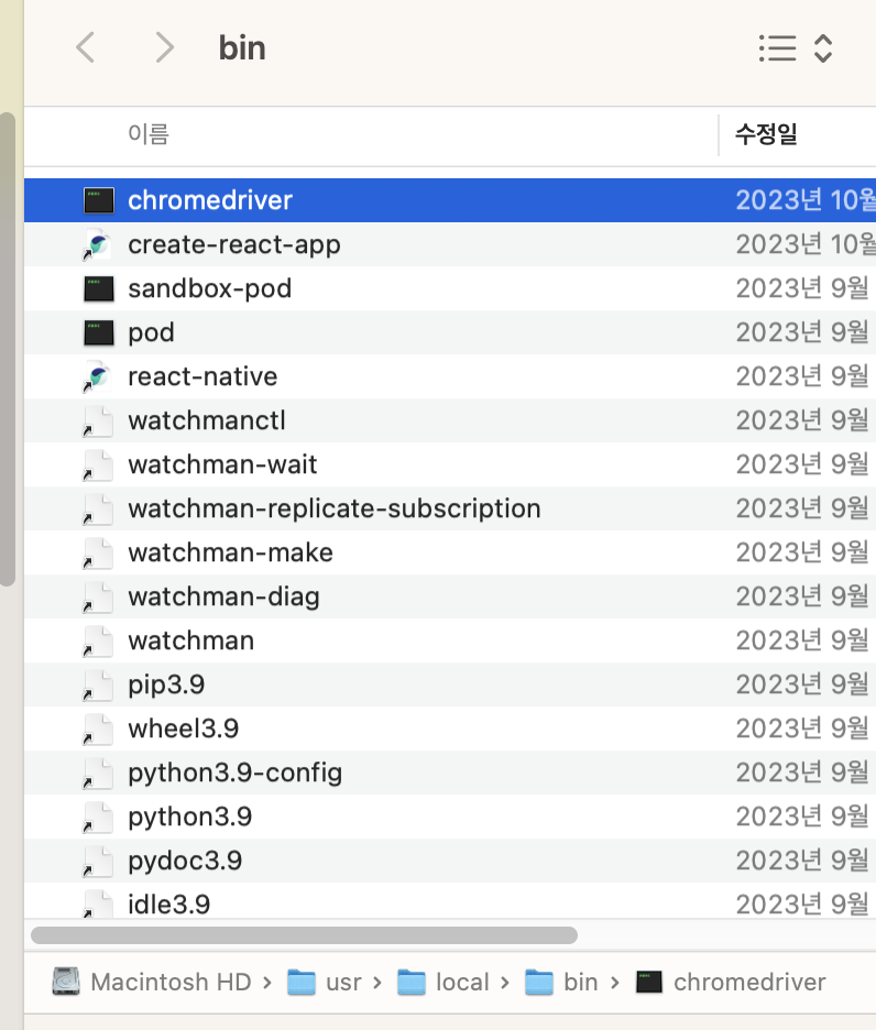 /usr/local/bin 폴더를 터미널로 접근한다.