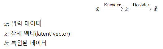 - Decoder : 잠재 공간에서 원래 입력으로 복원