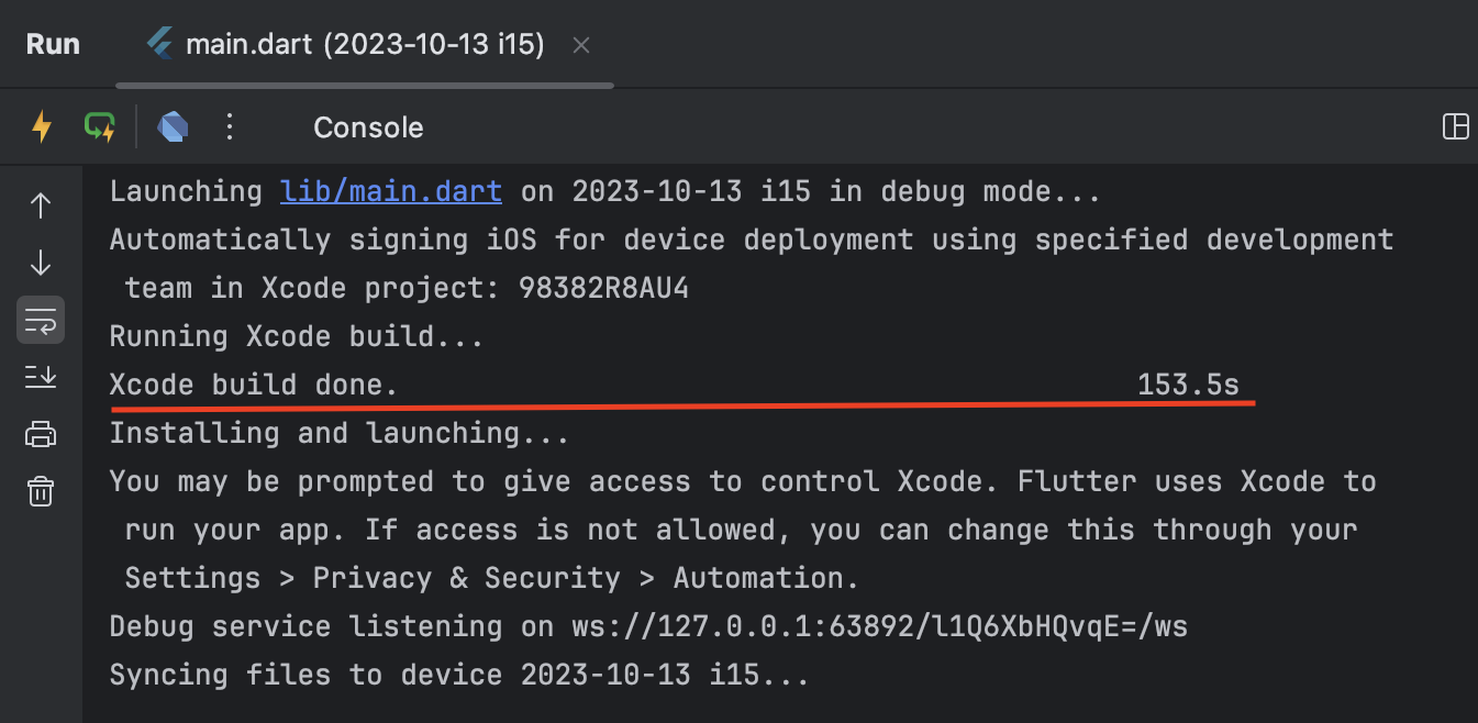 time flutter run 명령어로 실행했을 때