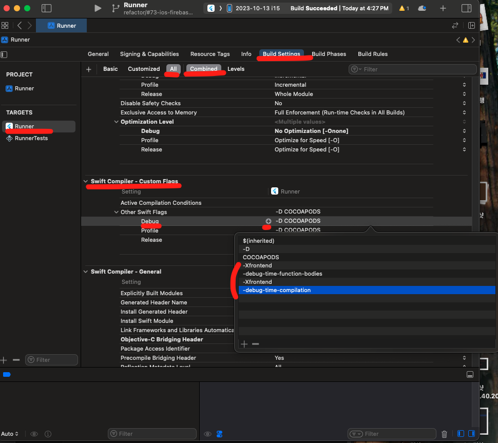 디버그 상세하게 볼 수 있도록 xcode 설정에서 원하는 플래그 추가