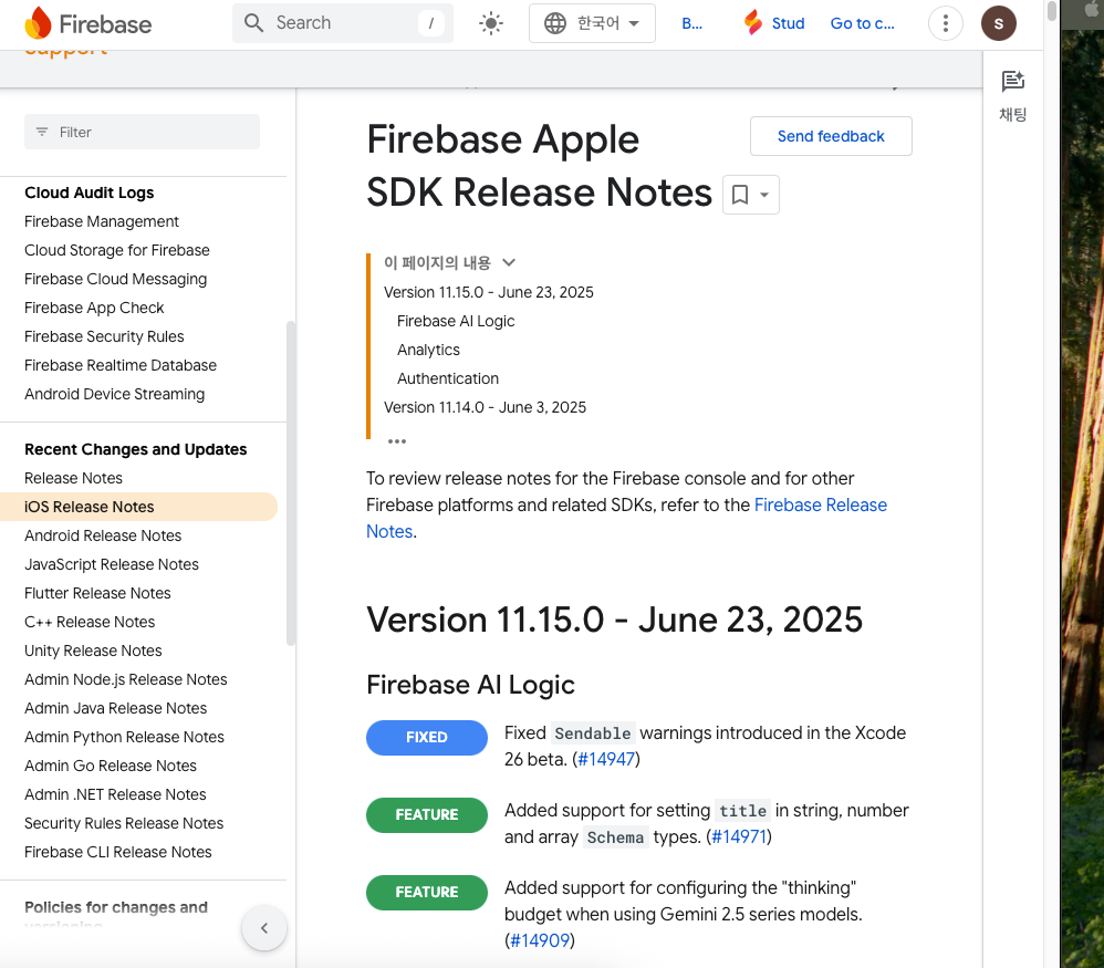 https://firebase.google.com/support/release-notes/ios?_gl=1*wozcla*_up*MQ..*_ga*MTg3NDI4MDI0MC4xNzUwOTIyOTAz*_ga_CW55HF8NVT*czE3NTA5MjI5MDMkbzEkZzAkdDE3NTA5MjI5MDMkajYwJGwwJGgw