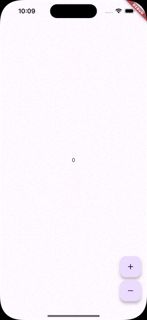 이제 메인 페이지를 CounterPage로 변경해주면 끝. 앱이 제대로 작동되는 것을 볼 수 있다.