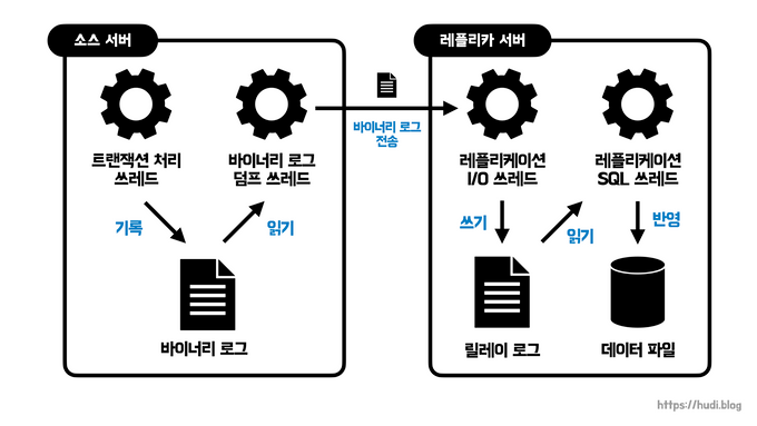 MySQL에서 복제 동기화가 처리되는 전반적인 과정은 다음과 같다.