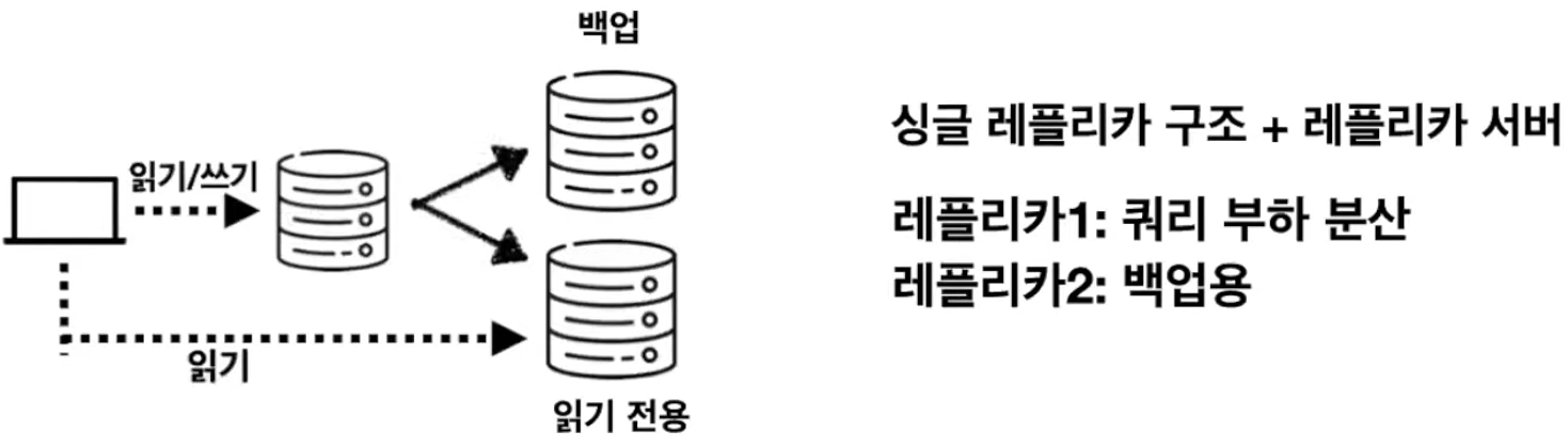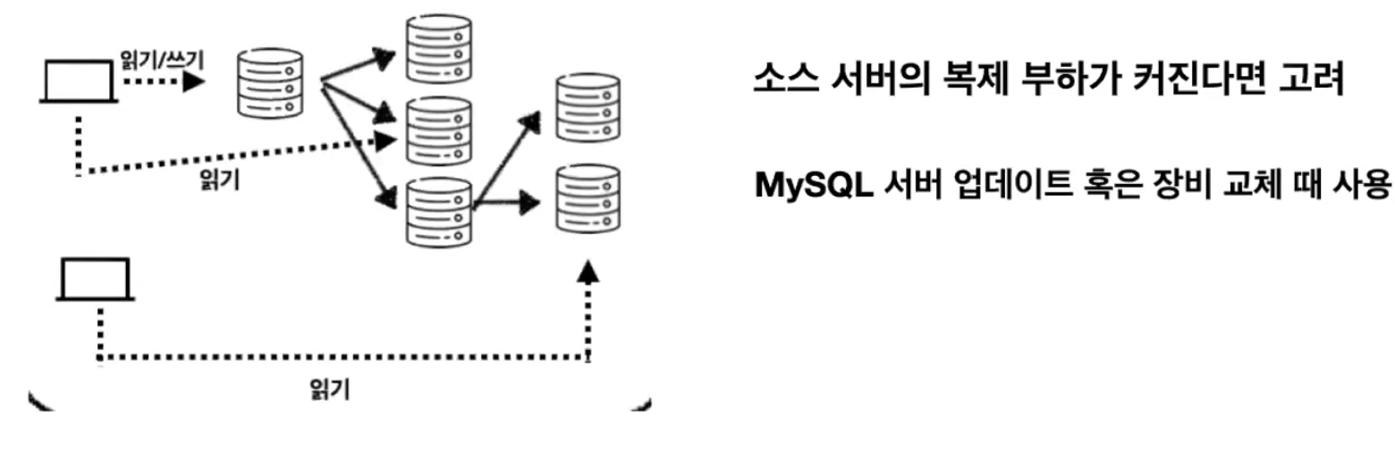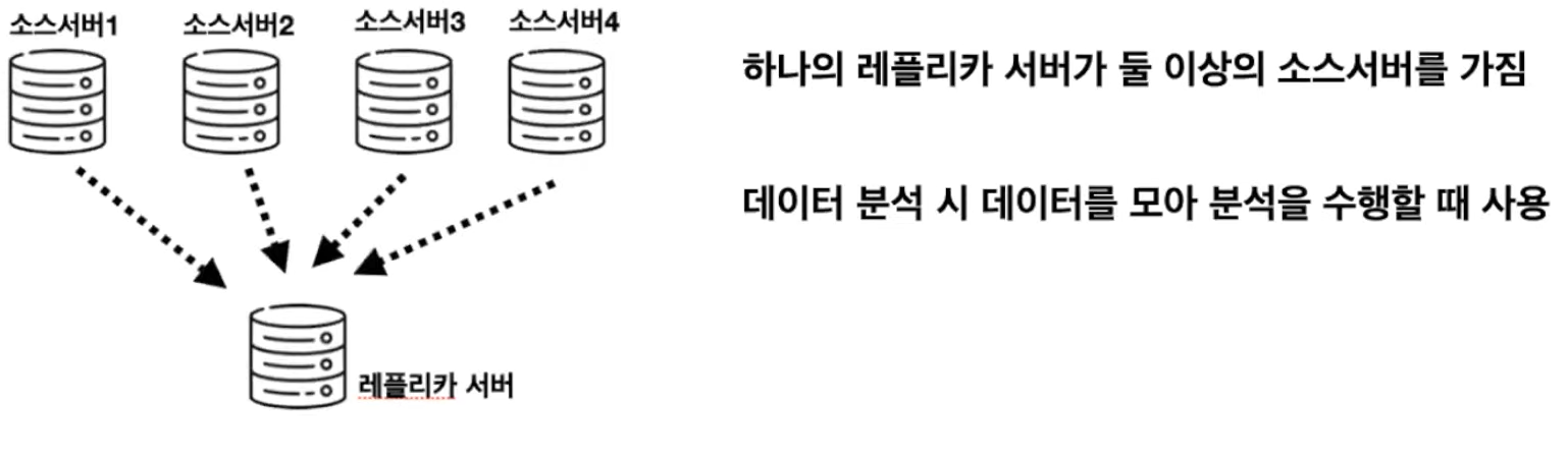 이외에도 분석용 쿼리들을 실행하기 위한 리플리카 서버를 구축하는 데이터 분석용 목적, 어플리케이션 서버와 DB 서버가 서로 떨어져 있는 경우 두 서버 간 통신 시간이 거리에 비례해 늘어나 서비스 응답 속도에도 영향을 끼치므로 어플리케이션 서버 위치에 리플리카 서버를 구축함으로써 응답 속도를 개선하는 데이터의 지리적 분산 목적 등이 있다.