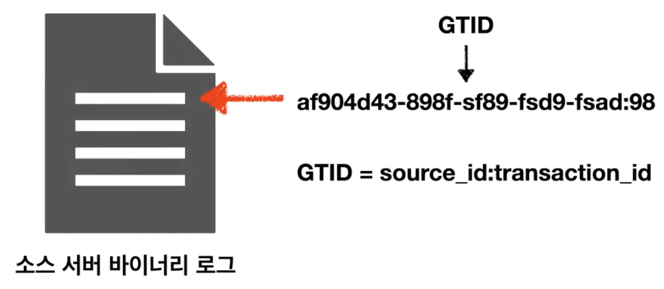 글로벌 트랜잭션 아이디 기반 복제는 복제에 참여한 전체 MySQL 서버들에서 고유하도록 각 이벤트에 부여된 식별 값인 GTID를 기반으로 복제가 진행되는 형태다. 이 값들은 모두 동일하기 때문에 동일한 이벤트에 대해서 동일한 글로벌 트랜젝션만 읽어오면 반영할 수 있다.