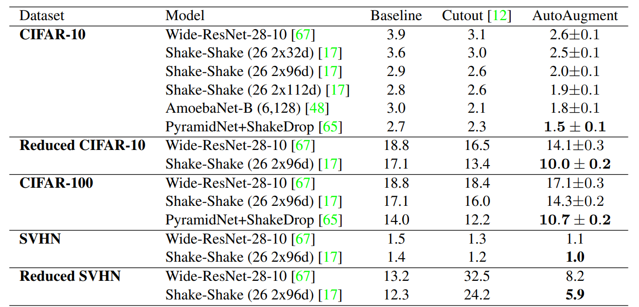 3. 한 데이터 셋에서 얻어낸 최적의 augmentation 방법을 다른 데이터 셋에 전이하여 사용해도 좋은 성능을 기대할 수 있다.