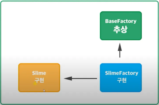 결국엔 슬라임 팩토리가 베이스 팩토리를 상속하고 슬라임을 구현한다