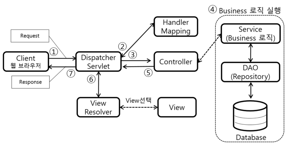 Spring Framework 에서는 클라이언트의 화면을 표현하기 위한 View와 서비스를 수행하기 위한 개발 로직 부분을 나누는 MVC2 패턴을 지원함.
