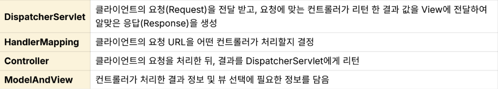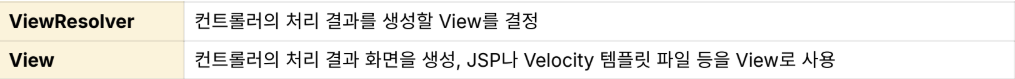 | Spring MVC | MVC(Model, View, Controller) 디자인 패턴을 적용할 수 있는 어노테이션을 지원하고, IOC / DI를 이용해 의존 관계를 관리하여 개발자가 아닌 서버가 객체들을 관리하는 웹 애플리케이션을 구축 할 수 있음. |