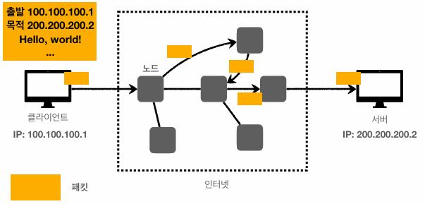 한쪽이 요청하면 다른 쪽은 응답을 보내주는 방식이다. 이때 IP라는 것을 사용한다.