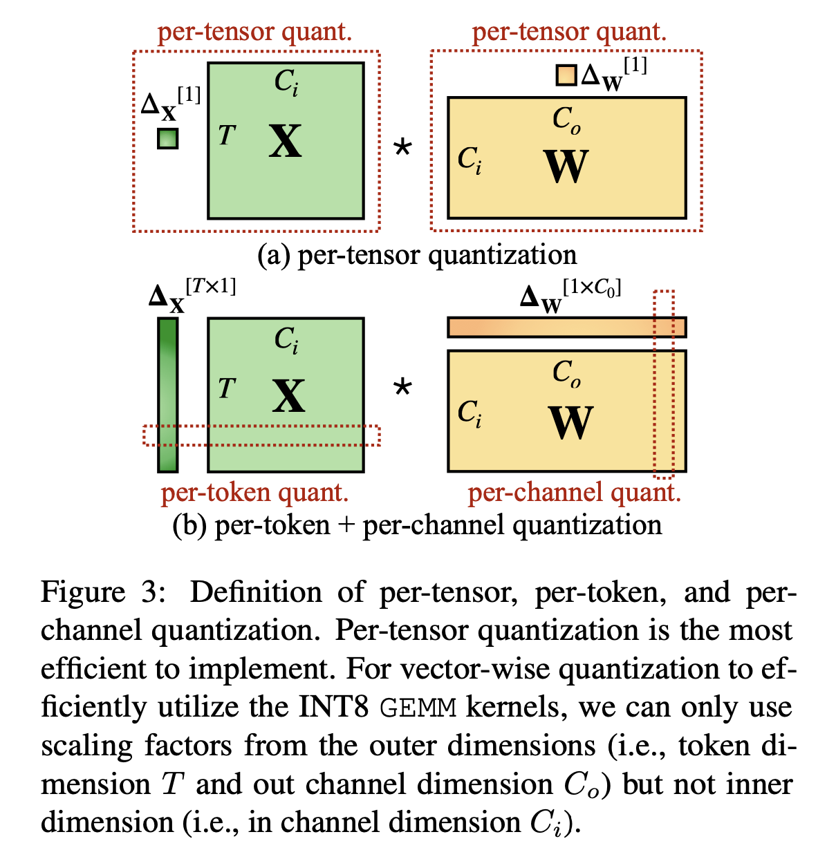 - Per-tensor: 모든 matrix에 대해서 하나의 양자화 상수 적용