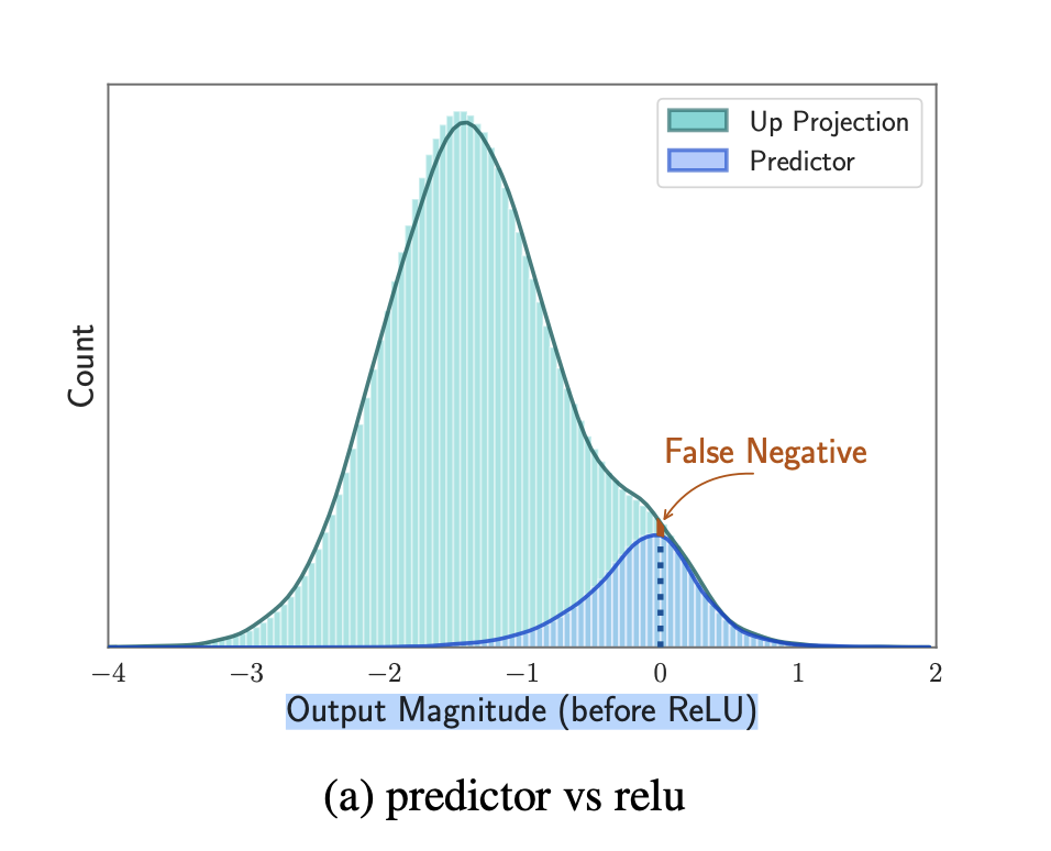 Green 부분이 up projection을 통해 나온 값, Blue 부분이 predictor를 통해서 나온 값이다. 그러니까 predictor가 not activated라고 판단한 값들은 나오지 않는 것이다.