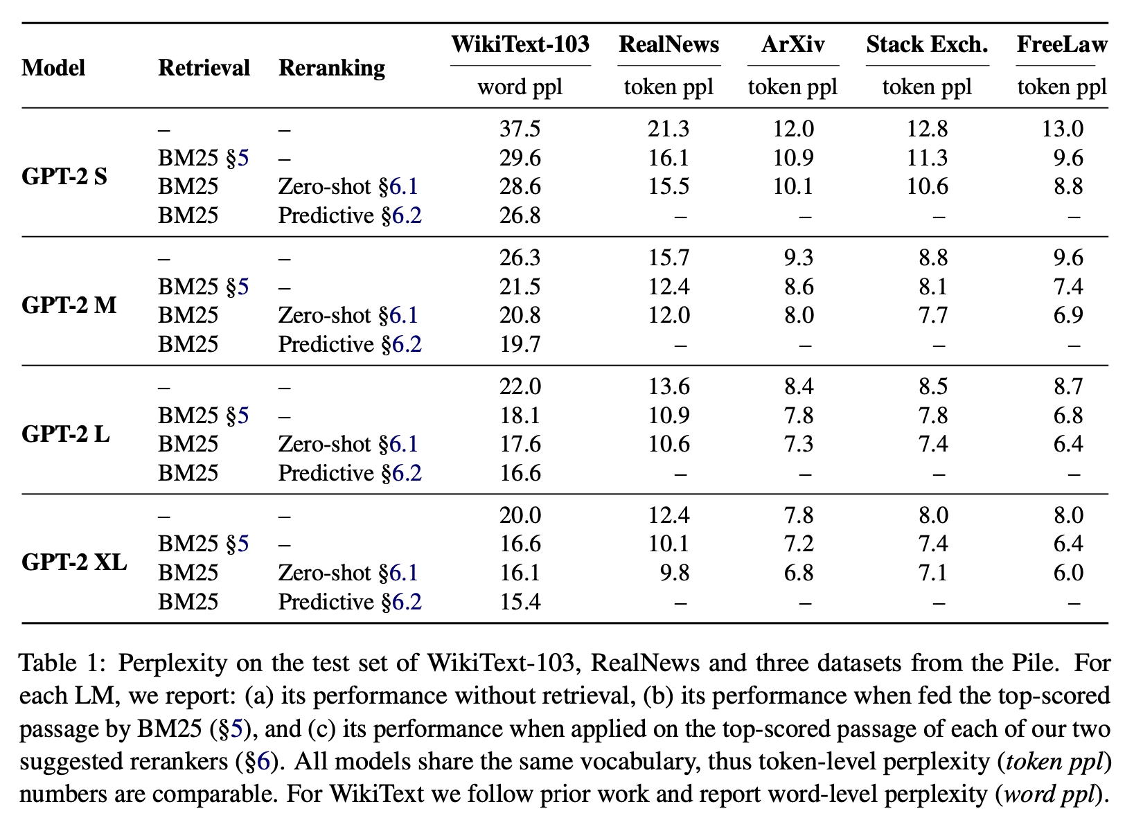 - Perplexity를 향상시키는 2가지 reranking 방법을 통해 기존의 retrieval 성능을 향상시킴