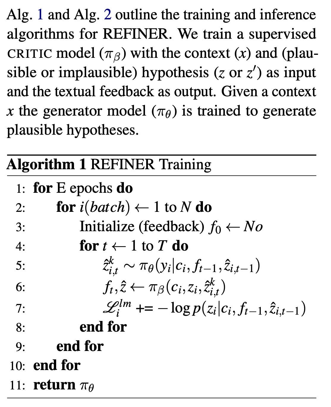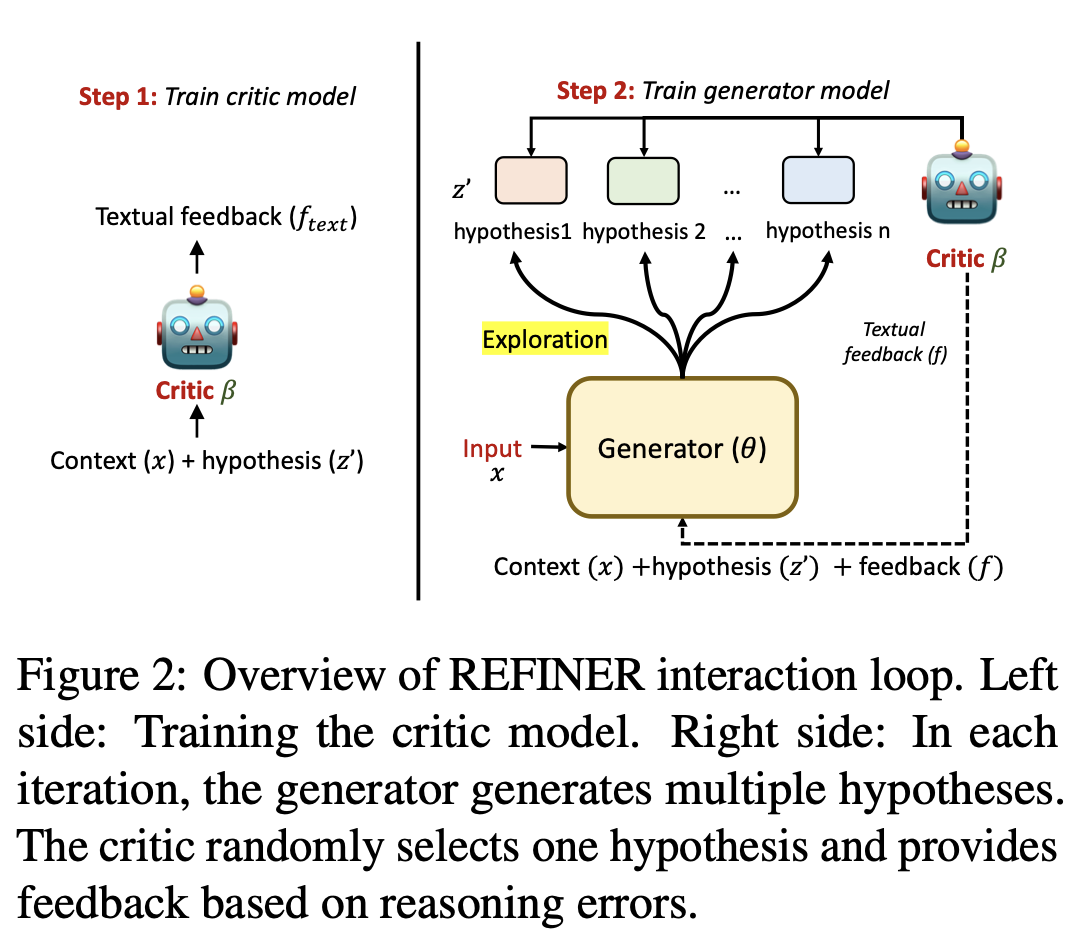 Critic model() 학습 → 입력: context() & hypothesis( or ), 출력: textual feedback