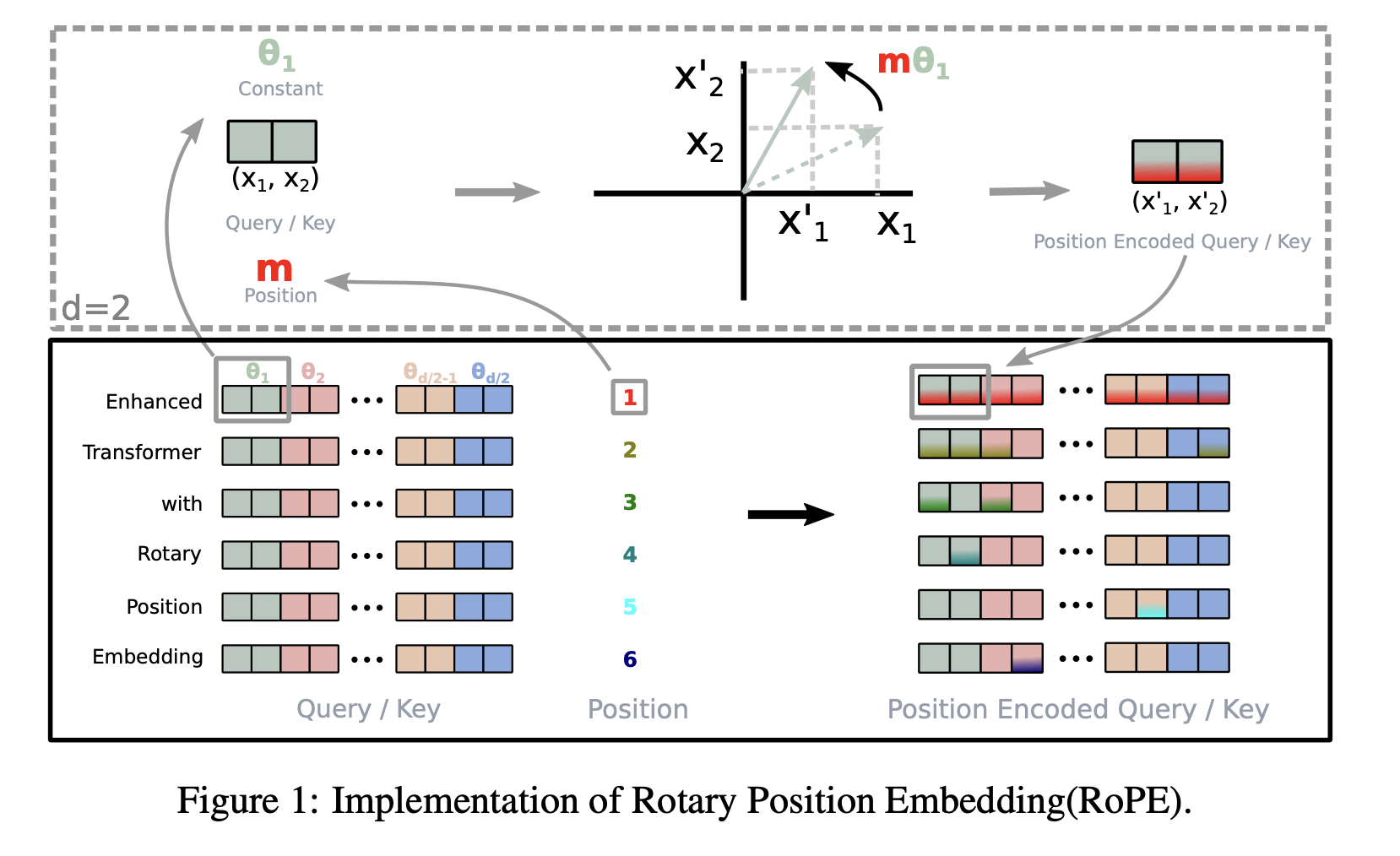 이 논문에서, PLM들의 학습 절차에 위치 정보를 활용하기 위해 “Rotary Position Embedding(RoPE)”라 불리는 새로운 방법을 소개한다. 구체적으로, RoPE는 rotation matrix를 이용해 absolute position을 인코딩하고, 그 동안에 self-attention 공식에서 명시적인 relative position dependency를 통합한다.