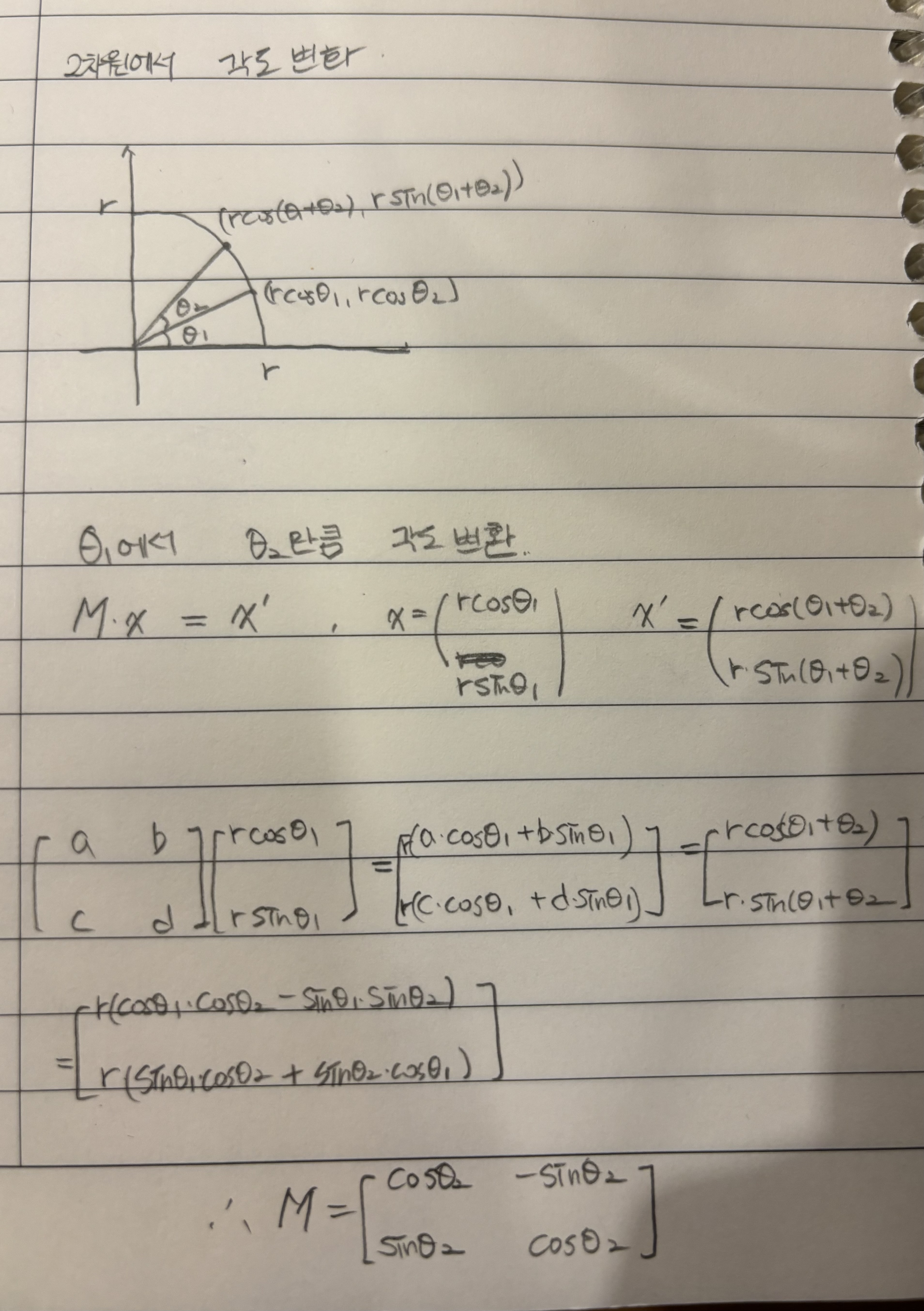 eimθ 가 왜 (cosmθsinmθ−sinmθcosmθ) 인 matrix로 표현될까? eimθ는 각도 변환(회전) 부분이다! 특정 벡터를 mθ 만큼 회전시키는 역할을 함!