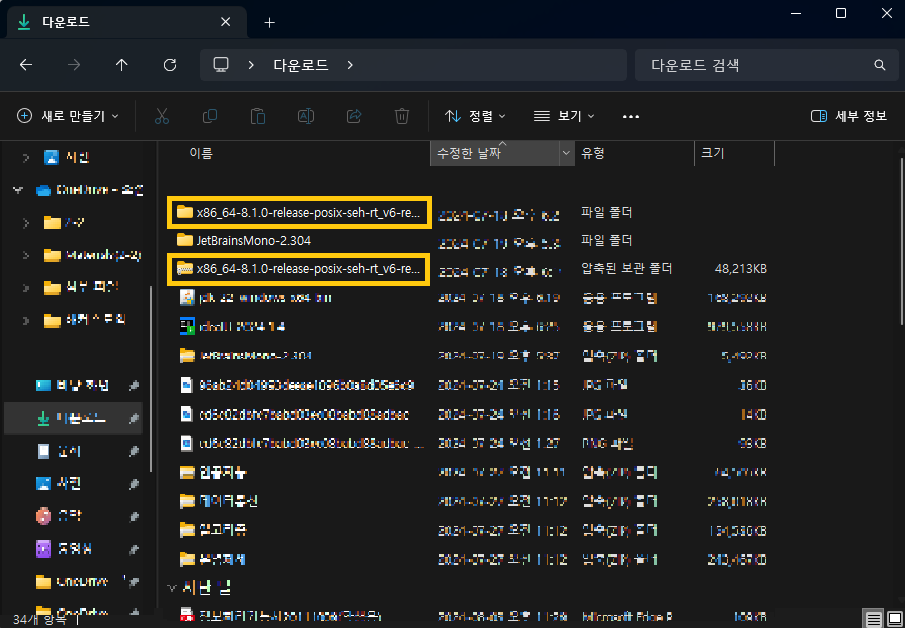 다운로드가 완료되면 아래와 같이 압축폴더가 생성되는데 이것을 위의 폴더처럼 압축 해제시킨다.