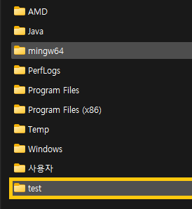 원하는 위치에 테스트 폴더를 만든다. 필자는 C드라이브에 폴더를 생성하였다.